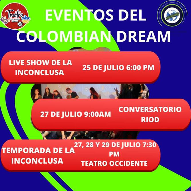 El colectivo teatral de la Fundación Colombian Dream nace en el año 2012, como fruto y necesidad del proceso artístico, logrando crear un repertorio de obras, entre ellas la más reciente llamada “la inconclusa”. Esta obra con duración de 50 minutos te envuelve.