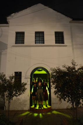 Los escenarios de la obra construidos en una casa de arquitectura clásica del barrio La Magdalena de Bogotá, recrean la casa de una familia que es arrastrada al horror de una masacre; también se recrean diferentes pasajes del “purgatorio” a donde van los personajes que luchan por salir de allí y volver a la vida.